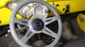 Inside, the black interior is fitted with AutoMeter gauges that provide clear and modern instrumentation while maintaining the restomod style.