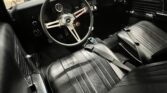 The interior has been fully refreshed with new vinyl seat covers, headliner, sun visors, carpet, and door panels. Front bucket seats are fitted, along with Chevelle script floor mats and a white 4-speed shifter knob. The dash retains a mostly stock appearance, enhanced by a RetroSound Bluetooth stereo with USB and rear 6×9 speakers, a brushed aluminum 3-spoke 14-inch sport steering wheel, and added under-dash oil and temperature gauges, along with a Bosch tachometer mounted to the steering column.