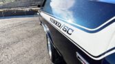 The exterior features deep water blue metallic paint completed in 2018, accented by a Yenko-style white stripe kit over a cowl hood. The stripes are applied as decals over clear coat. The body is complemented by new bumpers, trim, badges, moldings, and body mounts with bushings.