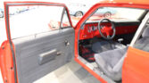 As you settle into the driver’s seat, you’re greeted by a cabin that blends vintage charm with subtle sophistication. The gray upholstery provides a comfortable and stylish contrast to the vibrant red paint, creating an atmosphere that invites you to take your time and enjoy the ride.