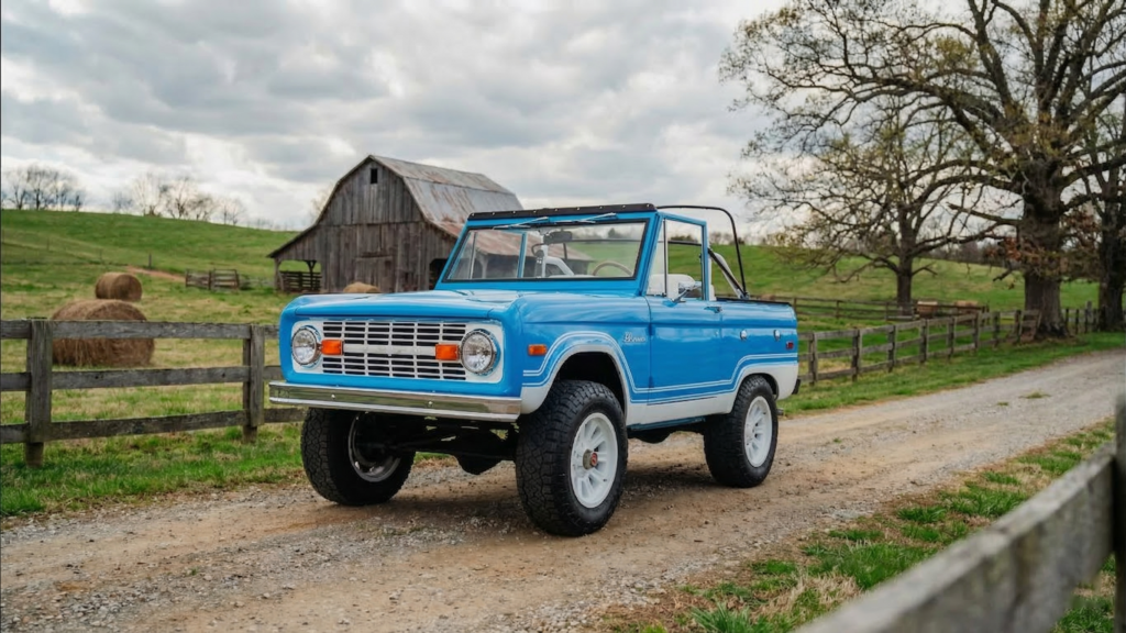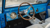 1973 Ford Bronco, finished in a striking Grabber Blue Metallic exterior that turns heads wherever it goes. This classic SUV is paired with a crisp White interior, creating a bold yet refined contrast that invites you to climb in and take the wheel.